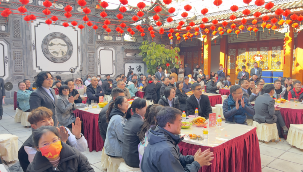活动结束之后,进入云叶股份新年团拜会的晚宴环节,以此来答谢各位云叶家人们一年来辛勤的工作与默默地付出。大家聚在一起,举杯欢饮,共襄盛举。现场气氛热烈,祝福声、碰杯声此起彼伏…..